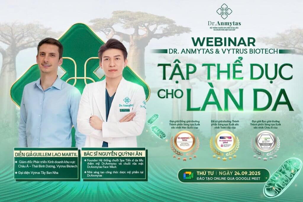 Ngày Thứ Tư, 24/09/2025, ngành spa Việt Nam đã chứng kiến một bước ngoặt lịch sử khi Dr.Anmytas tổ chức thành công Webinar “Tập thể dục for làn da” – sự kiện khoa học quy mô quốc tế, kết nối tinh hoa nghiên cứu toàn cầu with khát vọng nâng tầm sắc đẹp Việt.
