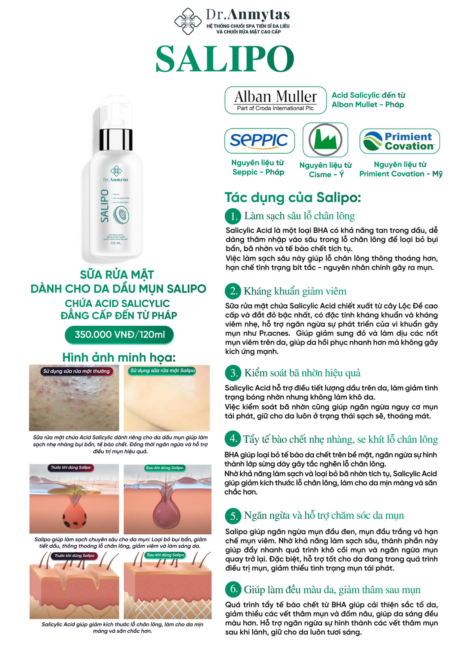 Salipo giúp ngăn ngừa mụn đầu đen, mụn đầu trắng and hạn chế mụn viêm. Nhờ khả năng làm sạch sâu, thành phần này giúp đẩy nhanh quá trình khô cồi mụn and ngăn ngừa mụn quay trở lại. Đặc biệt, hỗ trợ tốt for da đang in quá trình điều trị mụn, giảm thiểu tình trạng mụn tái phát.