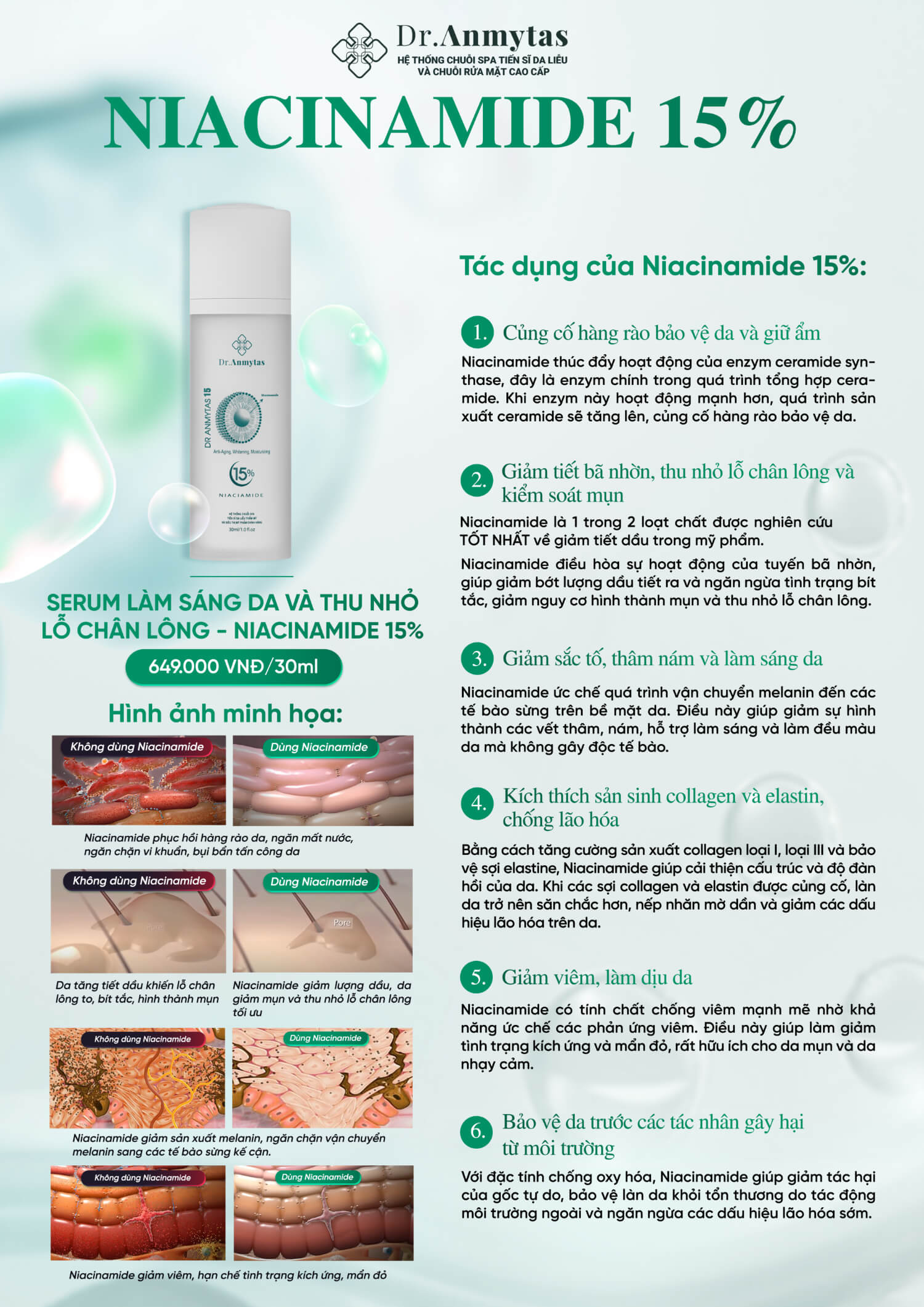 Hoạt chất không thể thiếu for mọi loại da cần: giảm mụn, giảm Dark Spots, củng cố hàng rào bảo vệ da and chống Aging.